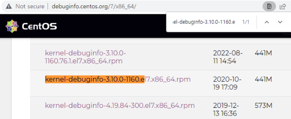 kernel-debuginfo 패키지들은 아래 repo 에서 찾을 수 있다.